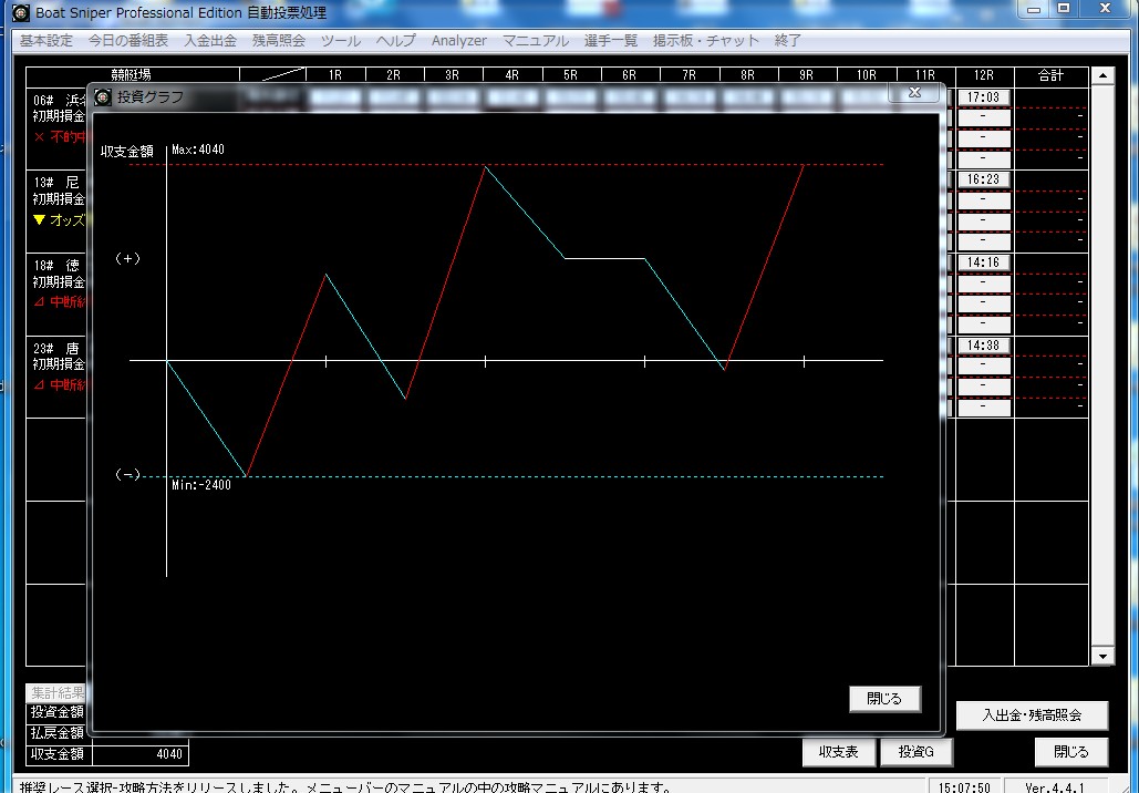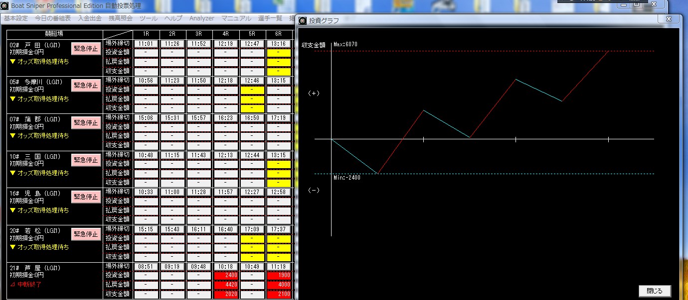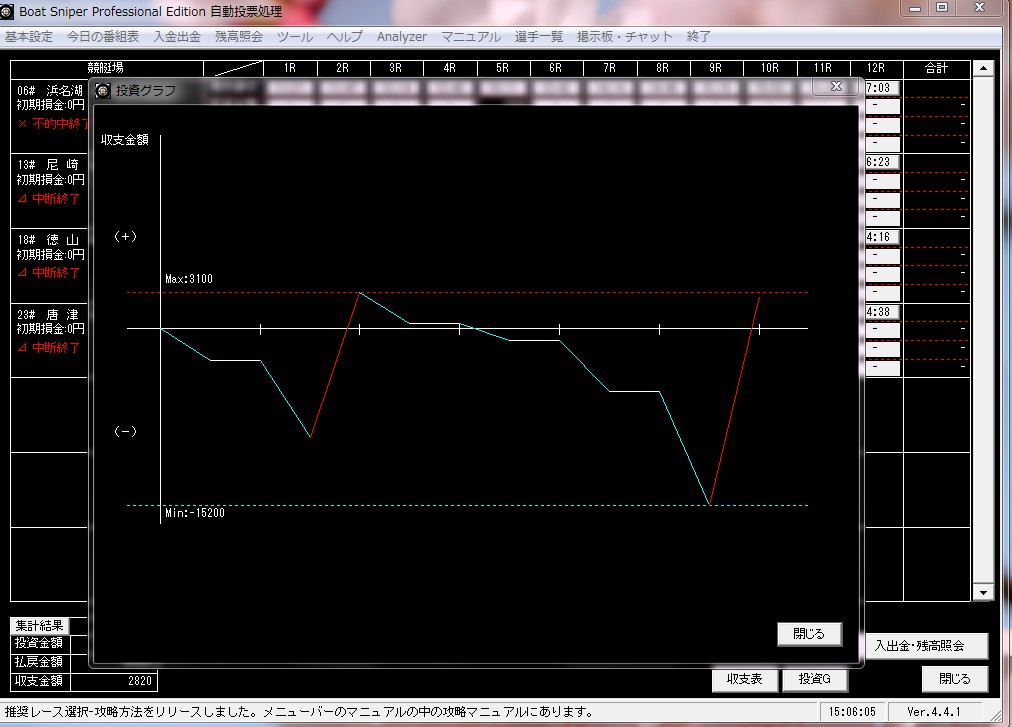 今現在、BoatSniperでの投資結果を公開していますが、とても素晴らしい機能が満載でとても素晴らしいソフトだと思います。